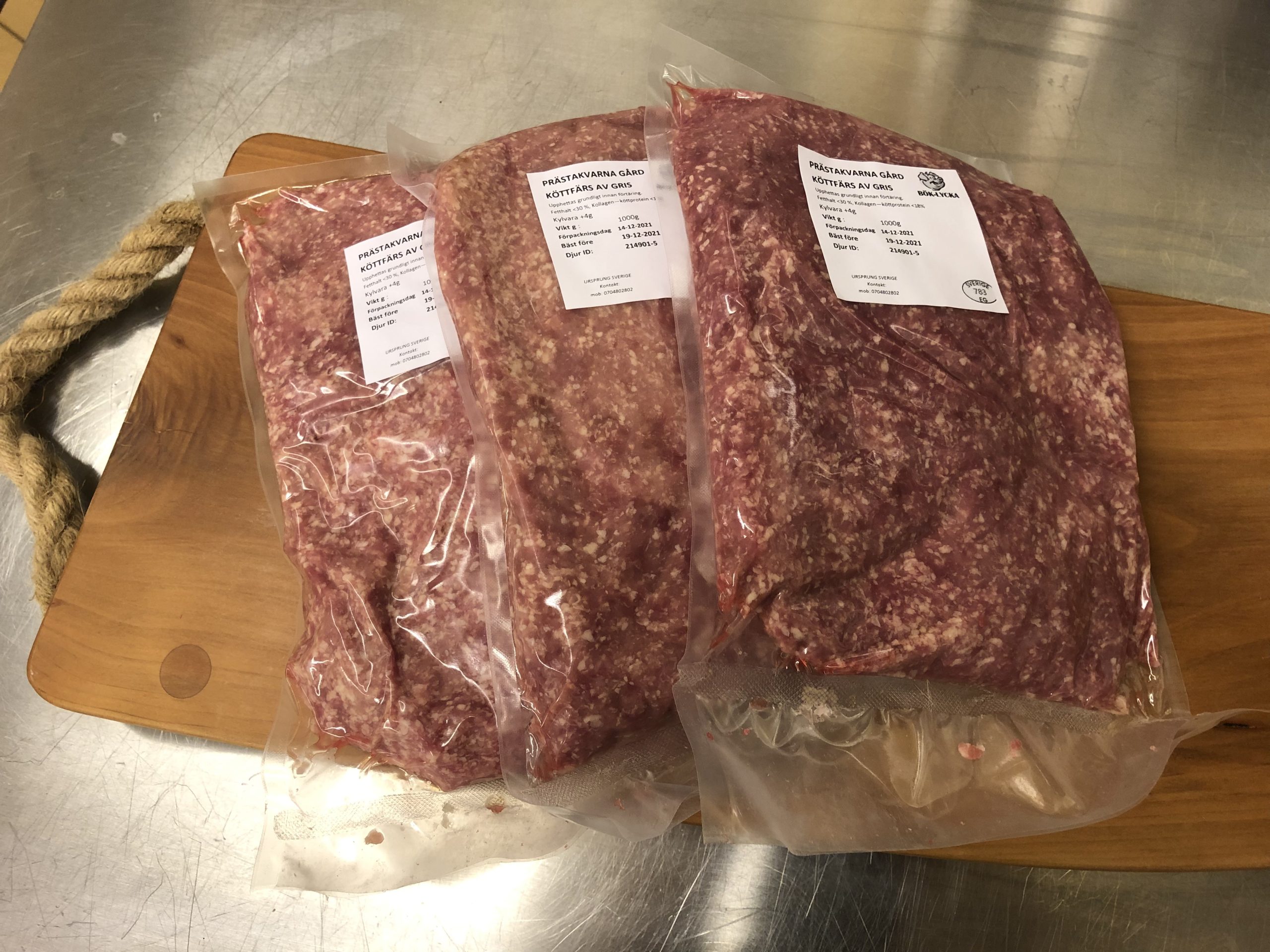 Vår köttfärs är betydligt fettsnålare än vanlig fläskfärs. Vi vakuumpackar den i enkilospåsar, men köper du den färsk kan du lätt dela den på mitten innan du fryser den. Köper du vår frysta är den redan delad i ca 2×500 gram.