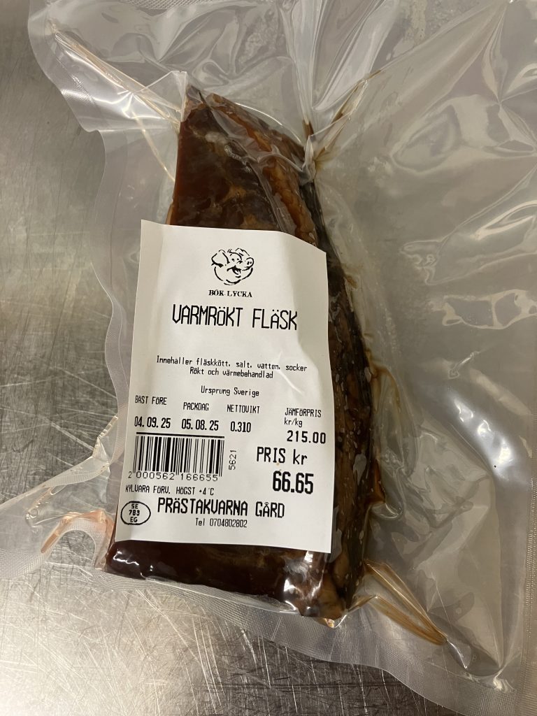 Ingridienser: fläskkött, salt, vatten, socker